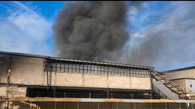 Basir mengatakan ada tiga bangunan yang terbakar. Di antaranya dua pabrik benda cair dan satu gudang.
