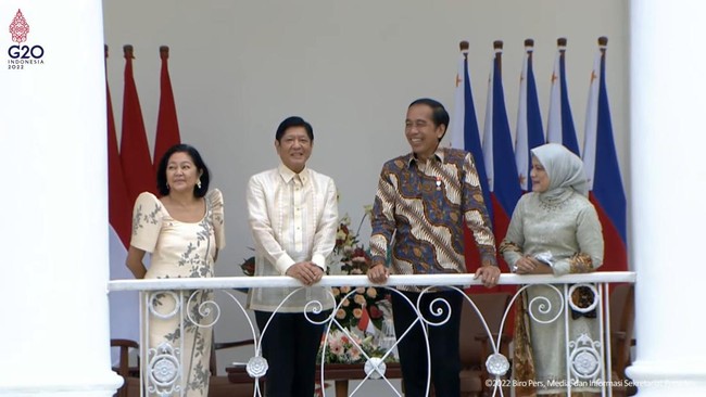 Setelah mengisi buku tamu, Marcos Jr kemudian diajak Jokowi berjalan ke veranda Istana Bogor. Jokowi dan Marcos Jr tampak berbincang-bincang santai.