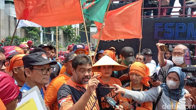 Saat ini diketahui massa buruh masih menggelar aksi demo di depan gedung DPR RI. Ribuan buruh ini hadir dari berbagai elemen serikat dan daerah di sekitar Jakarta.