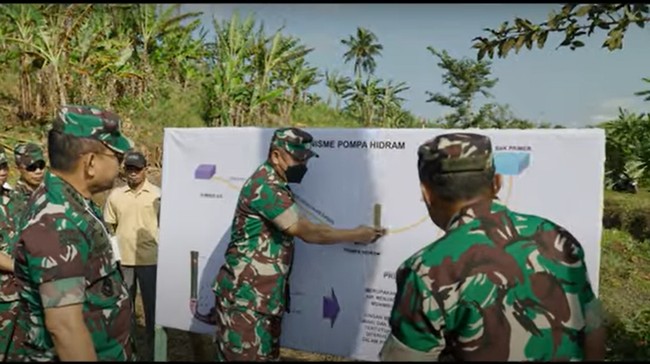Sementara itu, Pangkostrad juga berkesempatan berdiskusi dengan anggota kelompok tani penggarap membahas tentang perkembangan pengelolaan lahan yang sudah ditanami jagung serta perkembangan Pompa Hidram untuk mengairi lahan-lahan persawahan yang tidak ada air menjadi dapat air sehingga menghasilkan hasil yang optimal.