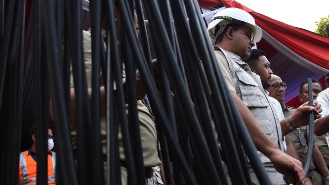 "Kita tahu bahwa selama ini kabel-kabel ini bergerak di atas, sehingga menjadi pemandangan yang unik karena ini, kalau difoto, seperti bakmi hitam yang menggelantung di mana-mana. Saking sudah lamanya ini, sebagian dari kita sudah menganggap itu tidak jadi masalah," kata Anies dalam sambutan, Senin (5/9).