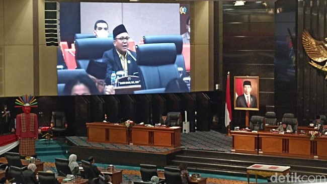 DPRD DKI Jakarta hari ini menggelar rapat paripurna membahas mengenai Pertanggungjawaban Pelaksanaan APBD (P2APBD) DKI Jakarta 2021. Anggota DPRD DKI Jakarta Basri Baco mengajukan interupsi di tengah rapat terkait usulan Pj Gubernur pengganti Anies Baswedan.