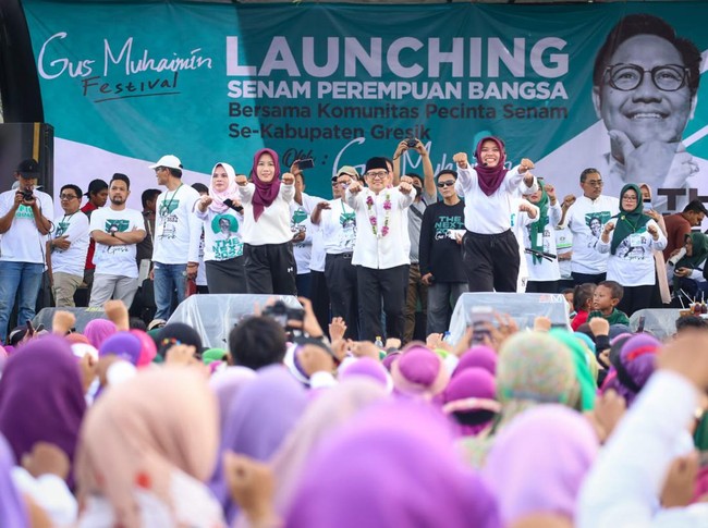 Dukungan itu diberikan dalam acara bertajuk Gus Muhaimin Festival Launching Senam Perempuan Bangsa bersama Komunitas Pecinta Senam se-Kabupaten Gresik di Lapangan Banjarsarri, Cerme, Gresik, Kamis (8/9/2022).