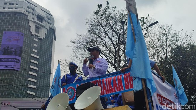 "Kedua, kita menolak UU Cipta Kerja. Tuntutan kita dari tahun ke tahun UU Cipta Kerja akan terus kita suarakan, sampai dengan pemerintah mencabut klaster ketenagakerjaan. Ketiga, meminta kenaikan upah. Kita tahu tahun 2021, 2022, naik upah nggak? Dengan PP 36 maka dapat dipastikan maka 5-10 tahun ke depan, khususnya yang wilayah Kabupaten itu nggak akan naik," ujar orator.