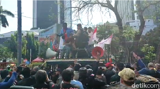 "Amankan, Pak," teriak massa aksi di Patung Kuda.