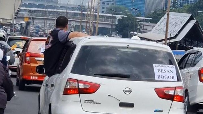 Polisi mengungkap konvoi mobil bertulisan 'Besan Bogor' yang menutup nomor kendaraannya saat melintas di Jalan Gatot Subroto, Jakarta Selatan, sebagai massa ojek online (ojol). Akasi konvoi menutupi pelat nomor itu rupanya berkaitan dengan demo yang dilakukan massa ojol hari ini.