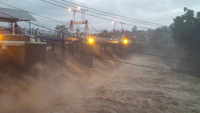 Hujan deras yang mengguyur kawasan Puncak, Bogor, mengakibatkan debit air Sungai Ciliwung meningkat. Tinggi muka air (TMA) di Bendung Katulampa Bogor mencapai 130 cm dengan status siaga 3.