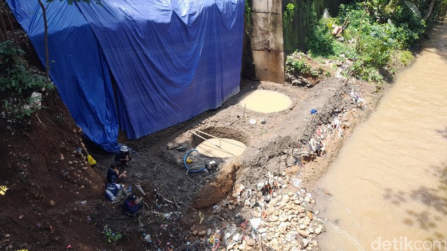 Seorang pekerja yang ditemui detikcom di lokasi menyebut saat ini tahapan pengerjaan tembok antilongsor itu masih pada proses pembangunan tiang pondasi. Dua lubang digali dengan kedalaman masing-masing mencapai sekitar 3 meter.
