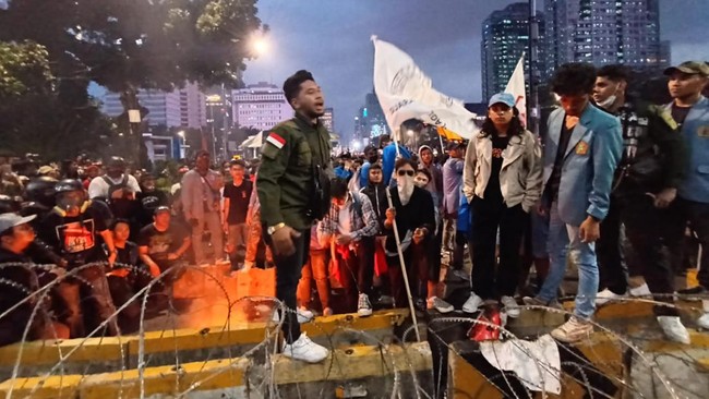 Sebelumnya diberitakan, massa demonstrasi di Patung Kuda, Jakarta Pusat, sempat memanas. Mereka menarik kawat berduri, membakar water barrier, hingga melempar botol ke aparat.