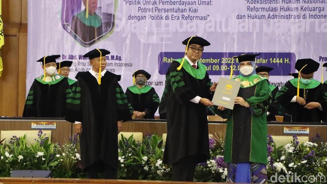 Hal itu disampaikan dalam pengukuhan Guru Besar bidang Ilmu Hukum Islam yang disampaikan Profesor Ahmad Tholabi Kharlie di kampus UIN Jakarta, Rabu (14/9) kemarin. Pengukuhan itu diisi testimoni sejumlah pihak, seperti Wakil Presiden Prof. K.H. Maruf Amin, Menteri Agama Yaqut Cholil Qoumas, Ketua MPR Bambang Soesatyo, Ketua KY, Ketua Mahkamah Konstitusi (MK) dan sejumlah pihak lainnya.