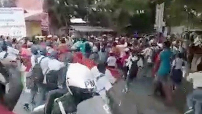 Dilansir dari detikSulsel, Kamis (15/9/2022), dalam video yang beredar di media sosial, tampak sejumlah pelajar dan warga sedang berjejer rapi di tepi jalan. Namun saat iring-iringan mobil Jokowi melintas, para pelajar tiba-tiba berhamburan masuk ke tengah jalan sehingga rombongan presiden pun terhenti.