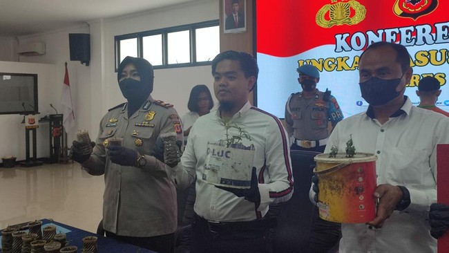 "Adapun barang bukti yang berhasil kita sita tanaman ganja ukuran besar 4 batang, kemudian 1 batang tanaman ganja ukuran sedang, kemudian tanaman ganja ukuran kecil sebanyak 17 batang, kemudian biji ganja, dan daun ganja," kata Kasat Narkoba Polres Bogor AKP M Ilham saat konferensi pers di Mapolres Bogor, Kamis (15/9/2022).