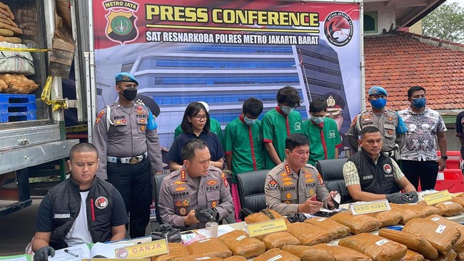 Satuan Narkoba Polres Metro Jakarta Barat mengungkap peredaran narkotika jenis ganja lintas Sumatera-Jawa. Polisi berhasil menyita ganja seberat 304,1 kg.