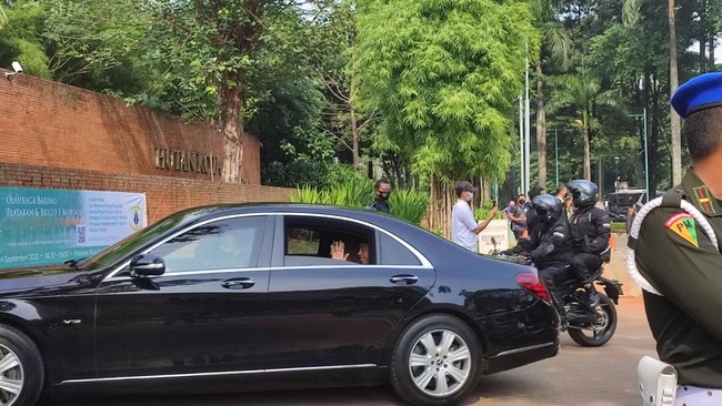 Pantauan detikcom, di depan Plataran Senayan, Jakarta Pusat, Minggu (18/9/2022) mobil RI-2 yang ditumpangi Ma'ruf Amin tiba pukul 09.40 WIB. Sedangkan mobil RI-1 Jokowi tiba di lokasi pukul 09.48 WIB.