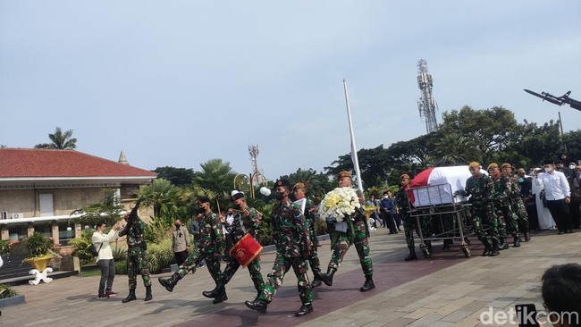 Jenazah Ketua Dewan Pers Azyumardi Azra tiba di peristirahatan terakhir Taman Makam Pahlawan (TMP) Kalibata, Jakarta Selatan. Kedatangan Azyumardi Azra disambut oleh pasukan militer.