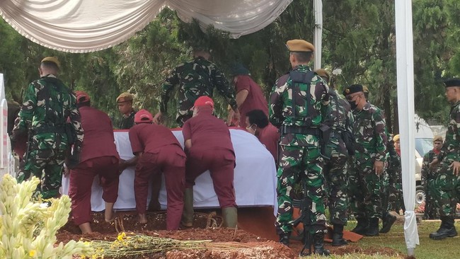 "Saya Menteri Koordinator Bidang Pembangunan Manusia dan Kebudayaan Muhadjir Effendy atas nama negara bangsa dan Tentara Negara Indonesia dengan ini mempersembahkan kepada persada Ibu Pertiwi jiwa dan raga almarhum," kata Muhadjir di lokasi.