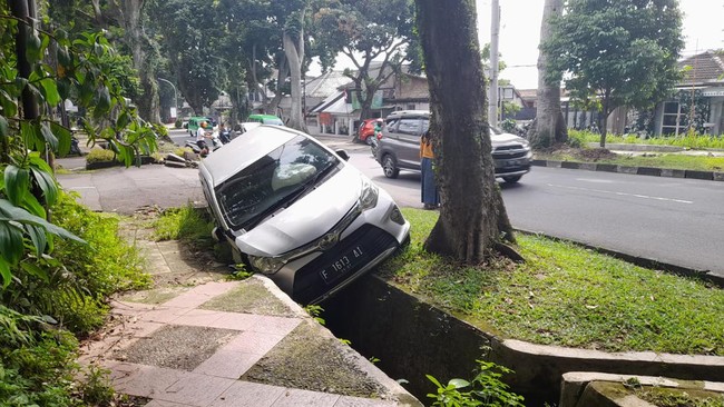 Pantauan di lokasi, Selasa (20/9/2022), minibus warna putih itu terperosok di parit Jl Ahmad Yani, Kota Bogor, dengan posisi roda mobil sebelah kanan masuk ke parit. Posisi mobil berada di kanan jalur yang mengarah ke Air Mancur Kota Bogor.