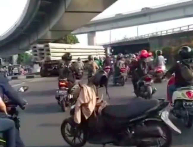 Kondisi tersebut terekam dalam video ponsel warga. Tampak sejumlah kendaraan tampak melambatkan lajunya.