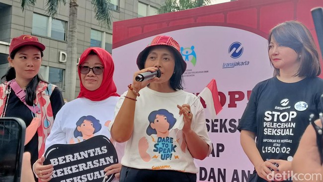 Kementerian Pemberdayaan Perempuan dan Perlindungan Anak (KemenPPPA) menggelar jalan sehat di kawasan Bundaran HI, Jakarta, pagi ini. Menteri PPPA Bintang Puspayoga mengajak masyarakat menghentikan kekerasan seksual terhadap perempuan dan anak.