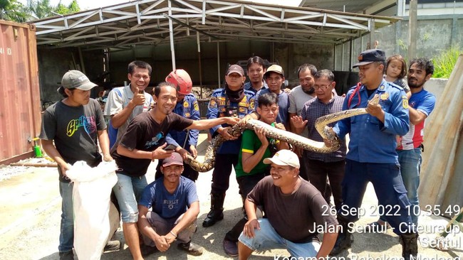 Dia mengatakan petugas melakukan evakuasi ular dengan sejumlah peralatan. Ular kemudian dievakuasi dari gudang itu setelah 1 jam.