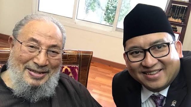 Fadli Zon mengunggah foto saat dia bertemu dengan Syekh Yusuf di Doha. Fadli memuji Syekh Yusuf sebagai ulama yang tegas dan cerdas.