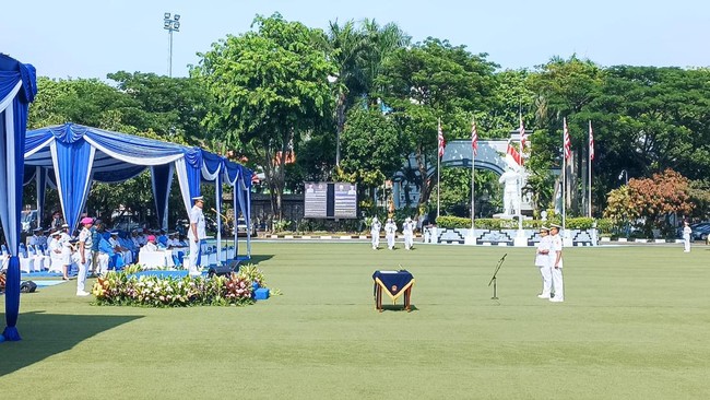 Pantauan detikcom di Lapangan Arafuru Koarmada I, Jakarta Pusat, Selasa (27/9/2022), acara dimulai dengan menyanyikan lagu Indonesia Raya. Kemudian dilanjutkan dengan prosesi serah terima jabatan Panglima Koarmada RI dan sumpah jabatan yang dipimpin oleh KSAL.