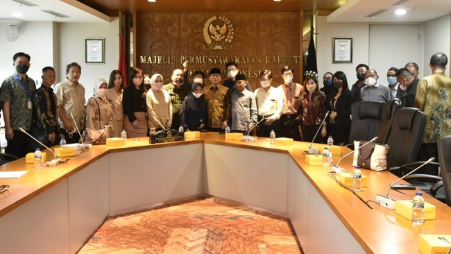 Wakil Ketua MPR Yandri Susanto menerima kedatangan Gabungan Pengusaha Korban Lumpur Lapindo di Kompleks Gedung MPR/DPR/DPD. Dalam pertemuan ini, para pengusaha menyampaikan aspirasi agar kerugian yang telah dialami dapat diganti dan dibayar sesuai dengan kesepakatan yang ada.