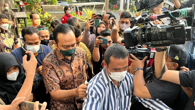 Adapun Sigid Haryo Wibisono terlihat keluar dari lobi gedung KPK sekitar pukul 15.30 WIB setelah menjalani pemeriksaan. Sigid mengenakan kemeja batik cokelat dan celana hitam.