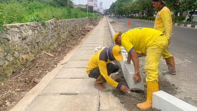 Salah seorang petugas Dinas Bina Marga, Matdiyasin mengatakan pengerjaan trotoar jalan itu sudah berlangsung sejak Minggu lalu. Dia menyebut pengerjaan itu masih kurang 30 meter lagi.