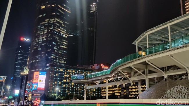 Patung Selamat Datang dapat terlihat secara utuh bila sudah melewati halte TransJakarta yang sedang dibangun. Hotel Indonesia juga turut terhalang dengan pembangunan halte ini.