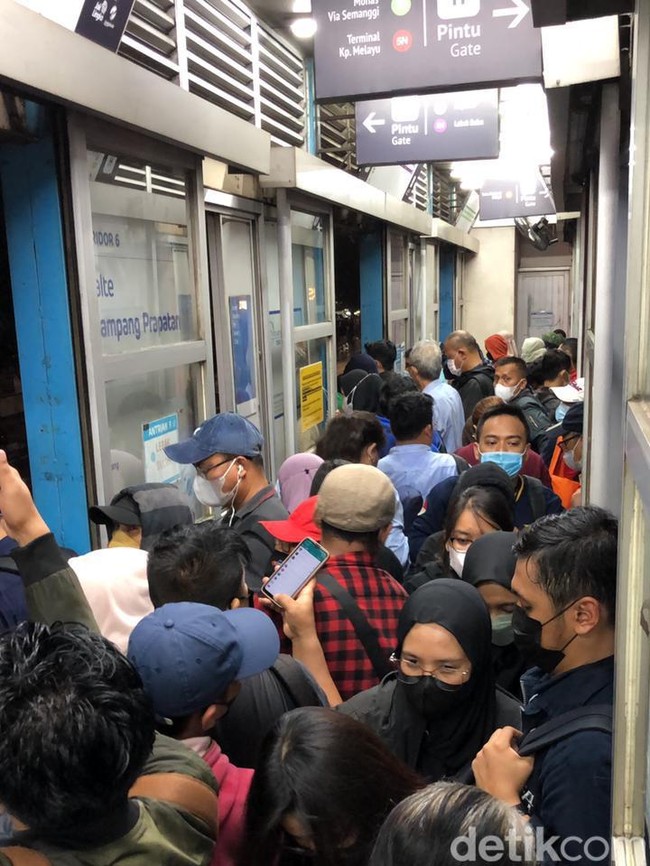 "Saking penuhnya jadi antrean nggak rapi, semrawut. Yang keluar bus susah rebutan sama yang mau masuk," imbuh Angga.