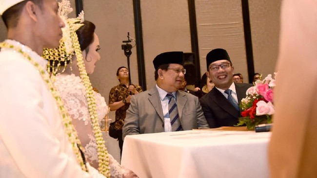 Suasana riang tergambar dalam foto tersebut. Prabowo memegang pundak Ridwan Kamil. Sementara Ridwan Kamil terlihat tersenyum memegang mikrofon.
