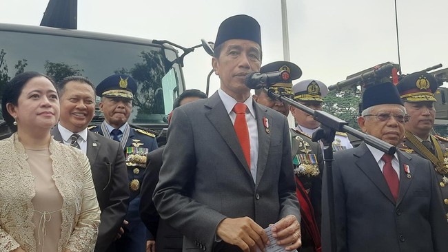 Momen itu terjadi setelah Jokowi menyaksikan defile pasukan dan pawai alutsista di depan halaman Istana Merdeka, Jakarta Pusat, Rabu (5/10/2022). Jokowi mengawali pernyataannya dengan berbicara tantangan geopolitik di tengah HUT ke-77 TNI. Jokowi ingin prajurit TNI selalu siap dalam menghadapi tantangan dan perubahan apa pun.