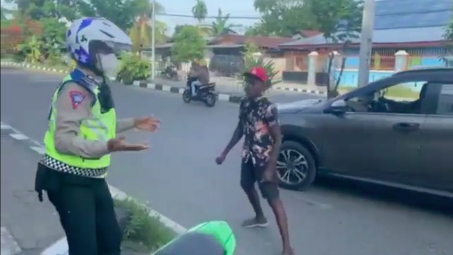 Dalam video tersebut, tampak pengguna jalan itu menggunakan kemeja, celana pendek, dan topi berwarna merah. Setelah memukul polantas, pemotor itu tampak berjalan mundur saat menyadari aksinya terekam kamera.