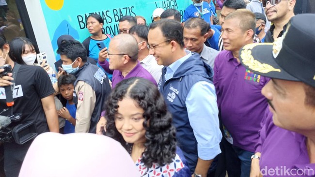 Anies tak hanya seorang diri. Ia didampingi oleh putrinya, Mutiara Baswedan dan sang suami Ali Alhuraiby. Sedangkan istri Anies, Fery Farhati, datang terlebih dahulu di lokasi.