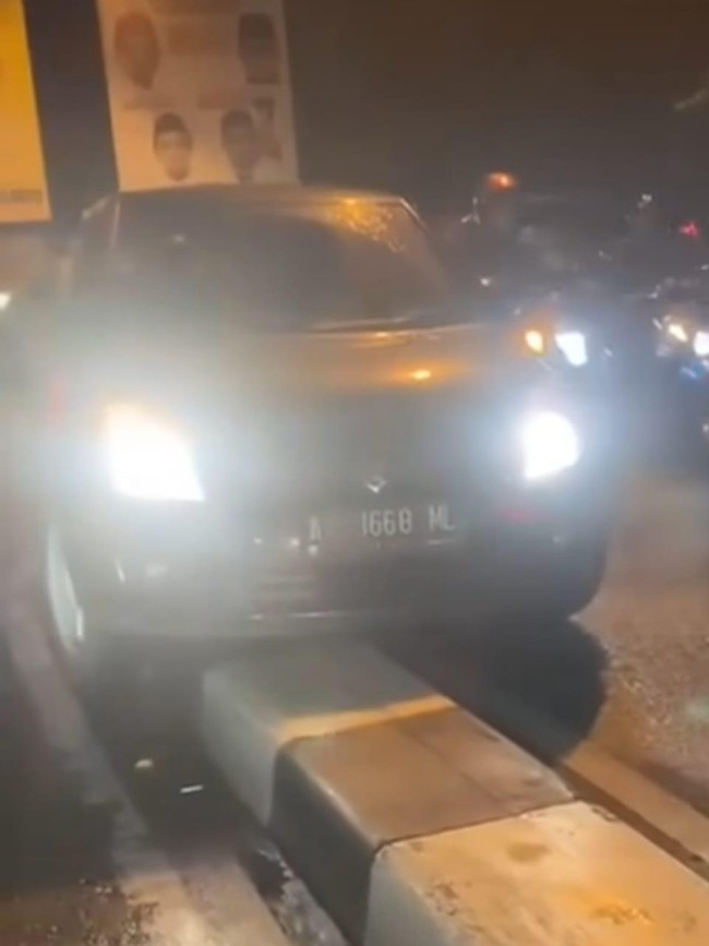 Dalam video yang beredar di media sosial, seperti dilihat Jumat (7/10/2022), tampak sebuah mobil berada di tengah-tengah pembatas jalan. Lampu mobil itu terlihat masih menyala.