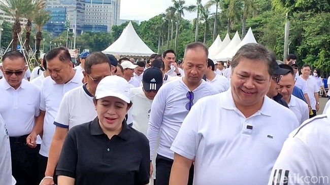Ketua DPP PDIP Puan Maharani bertemu dengan Ketua Umum Partai Golkar Airlangga Hartarto. Pertemuan kedua tokoh tersebut berlangsung dalam acara jalan santai.