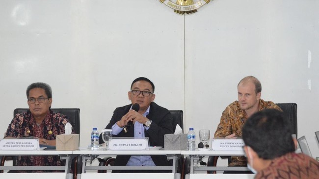 "Kami menerima UNICEF Indonesia dan Kementerian LHK, dimana Pemkab Bogor diminta mendukung langkah-langkah aksi mulai dari tahapan kajian, pelaksanaan, dan juga pasca pelaksanaan dengan aksi-aksi konkrit," kata Plt Bupati Bogor Iwan Setiawan melalui keterangannya, Sabtu (8/10/2022).