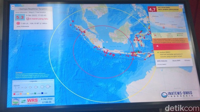 Diketahui, guncangan gempa ini terasa di gedung lantai 9 di Jakarta Selatan pada Minggu (9/10/2022) sekitar pukul 17.02 WIB. Gempa juga terasa di Kabupaten Bogor seperti Tenjo, Cilebut, Citayam dan Gunung Sindur.