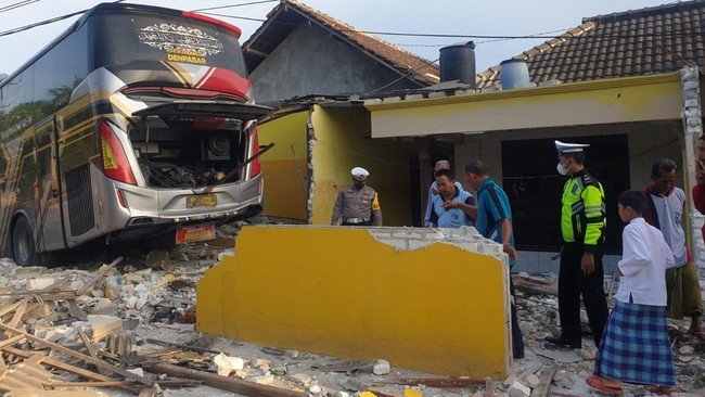 "Karena jarak sudah dekat dan tidak bisa menghindar, bus akhirnya menabrak empat rumah yang berada di tepi jalan," ujarnya.
