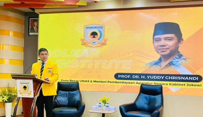 Mantan Duta Besar Indonesia untuk Ukraina yang juga Dewan Pakar Partai Golkar Yuddy Chrisnandi memberikan kuliah singkat kepada para kader peserta pelatihan Golkar Institute. Pada kesempatan tersebut, ia mengapresiasi pelatihan Golkar Institute 'Young Political Leaders'.