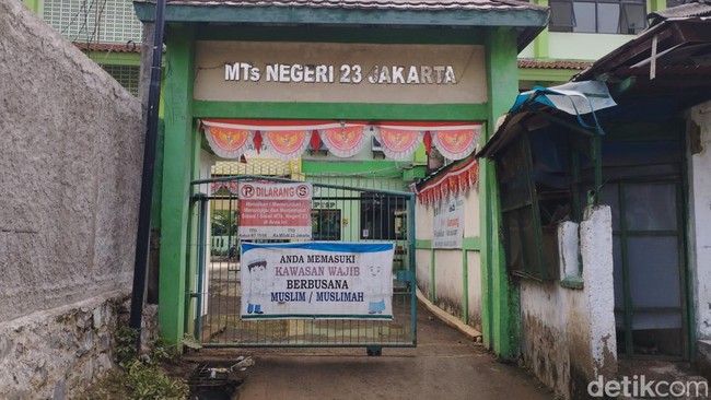 Madrasah Tsanawiyah Negeri (MTsN) 23 Pejaten Timur, Pasar Minggu, Jakarta Selatan, sempat dilanda banjir akibat luapan Bendung Katulampa Siaga 1. Banjir surut, MTsN kini tengah mengangkut sisa lumpur.