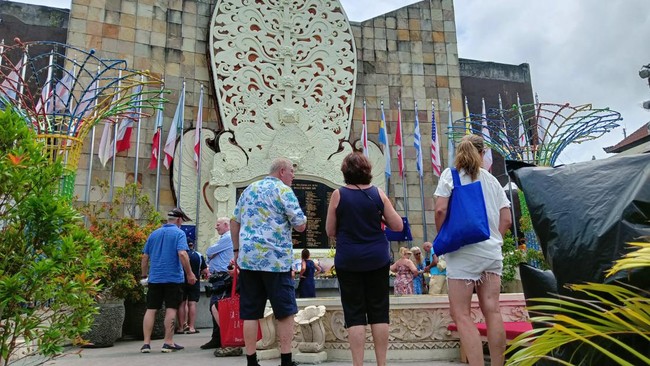 Sejumlah warga negara asing (WNA) mulai berdatangan saat peringatan dua dekade atau 20 tahun Tragedi Bom Bali I di Monumen Ground Zero, Jalan Raya Legian, Kuta, Badung, Bali. Beberapa keluarga maupun kerabat korban Bom Bali I sudah berdatangan sejak sehari sebelum peringatan.