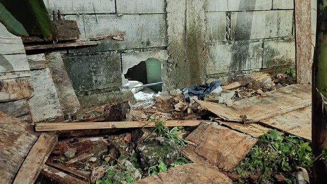 Dari foto yang diterima detikcom, terlihat adanya lubang tembok yang menganga. Lubang itulah yang menjadi akses para tujuh tahanan kabur.