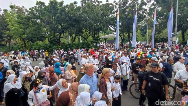 Teriakan Anies Presiden pun terdengar di sekitaran Jalan Medan Merdeka Selatan. Anies nampak meladeni ajakan berfoto warga itu sambil menaiki sepedanya. Terlihat pula segelintir bule di antara kerumunan itu.