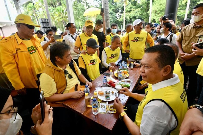 Wakil Ketua Umum Partai Golkar, Bambang Soesatyo mengikuti Jalan Sehat dalam rangka HUT ke-58 Partai Golkar bersama Ketua Umum Partai Golkar, Airlangga Hartarto beserta kader dan pengurus lainnya. Kegiatan ini diselenggarakan serentak di lebih dari 400 titik di 37 provinsi.