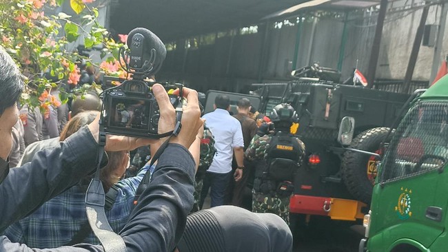 Ferdy Sambo dikawal anggota Korps Brimob Polri dengan senjata lengkap. Kedatangan Ferdy Sambo terpisah dengan tahanan lain.