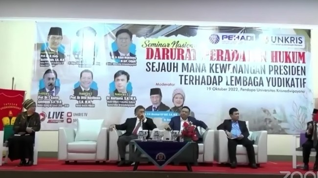 Hal itu disampaikan dalam 'Seminar Nasional-Darurat Peradaban Hukum: Sejauh Mana Kewenangan Presiden Terhadap Lembaga Yudikatif' yang disiarkan secara daring dan luring, Rabu (19/10/2022). Acara itu digelar Peradi dan Kampus Universitas Krisnadwipayana, Jakarta.