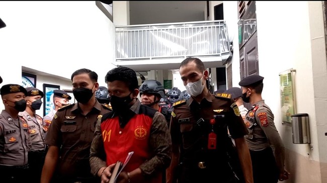 Terlihat Ferdy Sambo kembali mengenakan rompi tahanan dengan tangan terborgol. Ferdy Sambo terlihat dikawal sejumlah polisi.