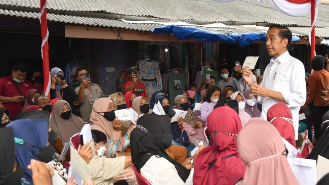 Di pasar tersebut, Jokowi menyerahkan bantuan modal kerja (BMK) senilai Rp 1,2 juta kepada para pedagang kaki lima (PKL) dan peserta Program Keluarga Harapan (PKH). Selain itu, Jokowi memastikan bahwa para penerima manfaat telah menerima bantuan langsung tunai (BLT) BBM dari pemerintah.